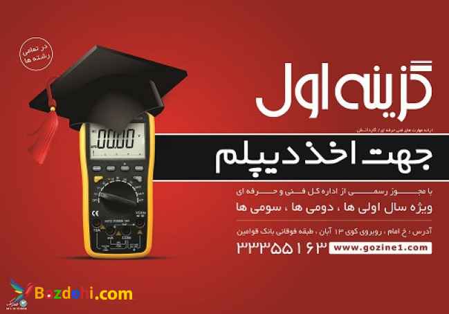 "بزرگترین مرکز آموزشی اخذ دیپلم با بیشترین آمار قبولی در سطح استان موفقیت شما با موسسه آموزشی گزینه اول تضمینی است ارائه دیپلم برای شاغلین در کمترین زمان ممکن(ویژه کسانی که امکان و زمان حضوردر کلاس ها را ندارند.) ارائه دیپلم برای دانش آموزان سوم راهنمائی و دبیرستان ارائه دیپلم مهارت های فنی حرفه ای و کاردانش ورشته های نظری با حضور اساتید مجرب سازمان فنی و حرفه ای استان امکان اخذ دیپلم برای دیپلم ردیها راه یابی به دانشگاه در کمترین زمان برای تماس مشاورینمان با شما کافی است کلمه "" دیپلم "" را به شماره "" 09149999010 "" ارسال کنید. آدرس : تبریز - خیابان امام - روبروی کوی13آبان – طبقه فوقانی بانک سپه (قوامین سابق) – آموزشگاه گزینه اول