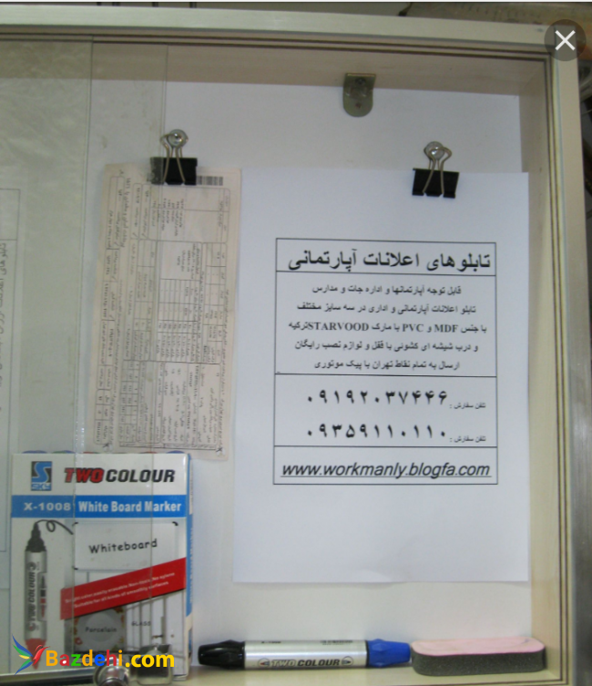تابلو اعلانات آپارتمانی MDF شیشه خور کشویی با قفل و گیره مخصوص کاغذ و قابلیت وایت برد با لوازم نصب رایگان در سه سایز فقط ۹۸ هزار تومان 60*45 دو برگ A4 70*45 سه برگ A4 90*45چهار برگ A4 شماره تماس. 09192037446 ۰۹۳۵۹۱۱۰۱۱۰