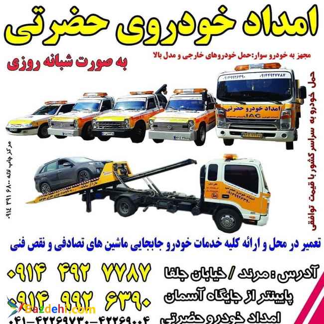 امدادخودرو خودروبر یدک کش مرندحضرتی