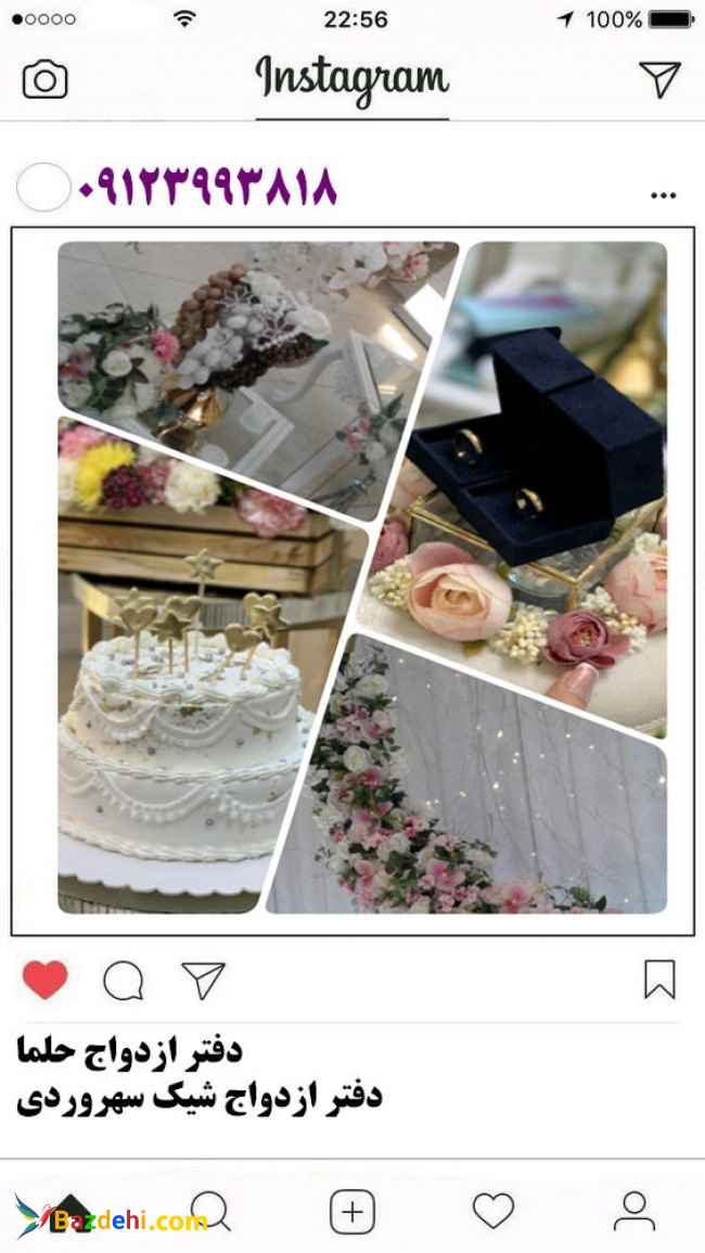 دفتر ازدواج شیک سهروردی حلما پکیج کامل قابل ارائه مراسم عقد 1- خواندن خطبه عقد و ثبت در دفتر رسمی 2- سفره عقد 3- عکس برداری از سفره عقد با عروس و داماد 4- سرو نهار و شام 5- آتلیه تخصصی
