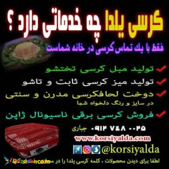 کرسی یلدا اولین و بزرگترین تولید کننده دکوراسیون کامل کرسی زمستان تولید مبل کرسی تختشو طبی در رنگ و سایز دلخواه مشتری با بهترین کیفیت و متریال خاص ترین لحافکرسی مدرن و سنتی در ایران میز کرسی تاشو جکی و ثابت تشک کرسی خرید و فروش کرسی برقی ژاپنی ناسیونال فروش کرسی برقی اکبند ژاپنی جهت درمان مفاصل و رماتیسم ارسال به سراسر ایران پیج اینستا : https://www.instagram.com/korsiyaldaa/ کانال تلگرام : t.me/korsiyalda سایت: www.korsiyalda.com ۰۹۱۲۷۴۸۰۰۲۵ واتساب ۰۹۳۵۳۳۰۰۵۰۳ ۰۹۳۳۹۸۲۶۴۹۷ ۰۲۵۳۸۸۷۴۶۳۹ *********** کلمات کلیدی طبق اولویت کرسی برقی کرسی ژاپنی کرسی یلدا لحاف کرسی سنتی لحافکرسی مدرن مبل کرسی زیباترین کرسی زیباترین لحاف کرسی کرسی لامپی کرسی برقی کرسی لامپی منقل لامپی کرسی برقی اکبند کرسی ژاپنی منقل ژاپنی ناسیونال کرسیبرقی ژاپنی کرسیبرقی لامپی درمان سکته درمان رماتیسم درمان خارش درمان مفاصل درمان ارتروز درمان دیسک کمر درمان پادرد ترمه پشتی جدید پشتی تاشو پشتی طبی مبل طبی کرسی برقی اکبند ناسیونال