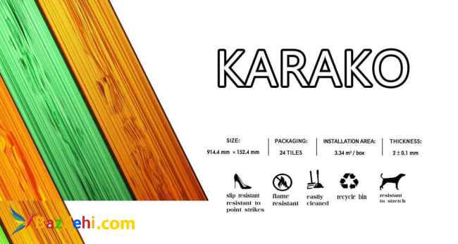 جنس کالا : PVC نوع طرح : الواری رنگ بندی :13 رنگ کشور سازنده : ایران ضخامت : 2 میل نوع بسته بندی : تایل عرض تایل : 152.4 میلی متر طول تایل : 914.4 میلی متر متراژ کارتن : 3.34 متر مربع تعداد در بسته : 24 شیت کاربری : اماکن مسکونی ، اداری ، فروشگاهی و ... نقد و بررسی کفپوش کاراکو • کفپوش کاراکو به وسیله ی دستگاه های لیزر برش می خورد . • کفپوش پی وی سی KARAKO ، جدید ترین نمونه و کالکشن کفپوش می باشد . • کفپوش پی وی سی کاراکو ضد حریق و آتشسوزی می باشد . • کفپوش KARAKO با گرمایش های از کف سازگار است . ساعات کاری : همه روزه 7:30 الی 12 شب یکسره جمعه ها 8 الی 9 شب یکسره مدیر فروش مهندس سلیمانی 09120321004 واحد بازاریابی : 09010000871 09130911392 09133375880 09138991552 09214414782 وب سایت خرید آنلاین : www.flooring-center.ir اینستا گرام : Flooring-center.ir