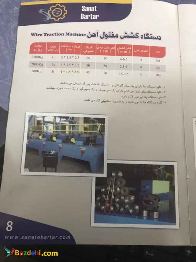 این دستگاه برای تولید انواع سیم و مفتول از قطر1.2تا30میلی متر به صورت کلاف مورد استفاده قرار میگیرد. کلیه دستگاه ها دارای دو سال گارانتی و10سال خدمات پس از فروش میباشد