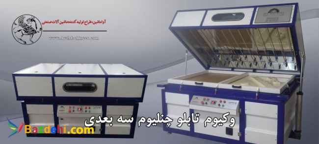 آوا ماشین، تولیدکننده ماشین آلات صنعتی سازنده دستگاه پرس وکیوم ورقهای آکریلیک 3میل(پلکسی) برای ساخت تابلوهای چنلیوم سه بعدی(برجسته) میباشد دستگاه در ابعاد مورد سفارش مشتری ساخته میشود و قابلیت وکیوم کردن ورق نیم شیت را دارا میباشد. .دستگاه دارای یکسال ضمانت و ده سال خدمات پس از فروش میباشد