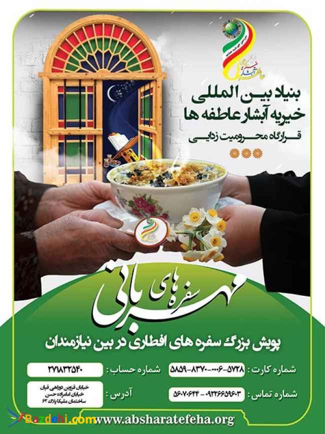 ماه رمضان ماه میهمانی خداوند خوانده می شود چرا که در این ماه گرانقدر حس و حال خدایی در قلب مردم بیش از ماه های دیگر سال احساس می شود و خداوند با رسوخ به قلب ها در دل انسان ها لطف و رحمت نسبت به بندگان نیازمندش ایجاد می کند تا بهانه ای باشد برای رنگین کردن سفره هایی که در روزهای عادی سال با ظرفی آب و تکه ای نان پر می شود. خداوند متعال در این ماه با ایجاد حس عطوفت و مهربانی در قلب بندگانی که از نظر مالی توانمند تر هستند میزبان سفره بندگانی می شود که به ندرت می توانند شکم خود و فرزندانشان را سیر کنند. ما نیز در بنیاد بین المللی خیریه آبشار عاطفه ها به سنت هر ساله در ماه مبارک رمضان با حمایت شما خیرین همیشه همراه، به اهدای افطاری برای نیازمندان می پردازیم. ماه رمضان امسال نیز به امید خدا طرح سفره های مهربانی برگزار خواهد شد و شما عزیزان هم میتوانید برای هرچه بهتر برگزار شدن این طرح در آن شرکت کنید شماره حساب:271832540 شماره کارت:5859837000065728 شبا:680180000000000271832540