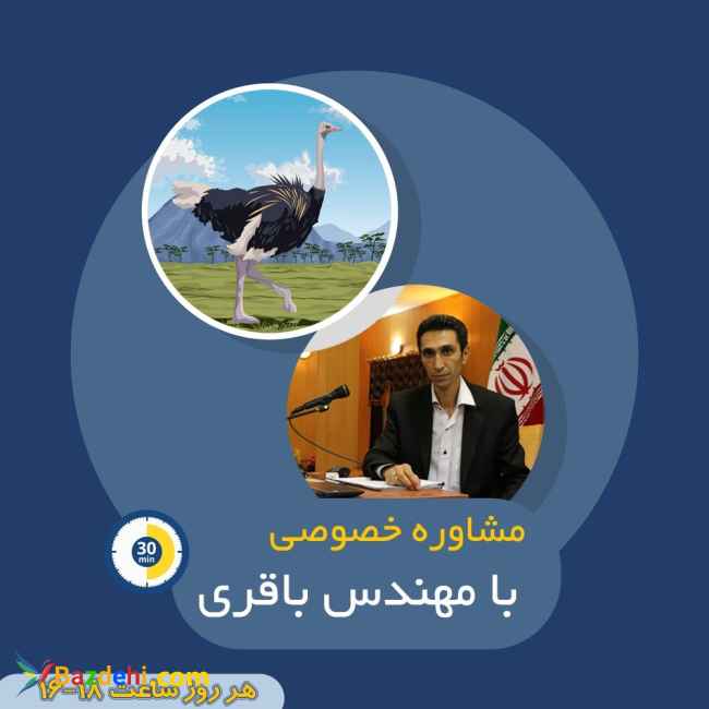 مشاوره راه اندازی مزرعه با مهندس باقری مشاوره مشاوره مشاوره !!!! اولین توصیه مهندس باقری به علاقمندان صنعت شترمرغ، بوقلمون، مرغ، بلدرچین و دیگر طیور، وقت و مسیر شما قابل بازگشت نیست پس دانسته و با مشاوره و راهنمایی در مسیر قدم بگذارید . فرصت مشاوره حضوری با مهندس باقری در راه اندازی مزرعه پرورش طیور از صفر تا صد .