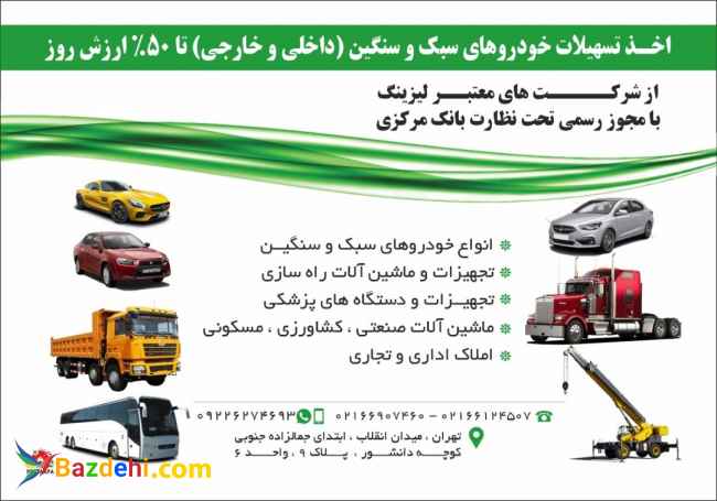 اخذ وام خرید خودروهای سنگین و سبک داخلی و خارجی تا 50% قیمت روز خودرو