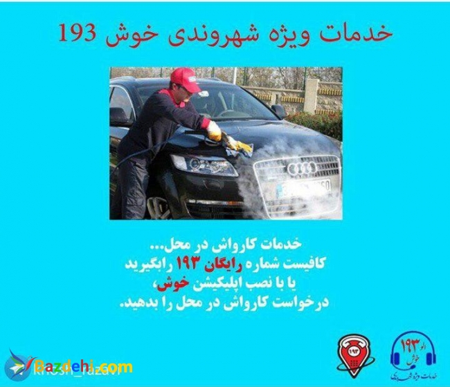 برای شستشوی ماشین خود در هر محلی که هستید نیازی به مراجعه به کارواش نیست تنها با تماس از طریق 193 ماشین شما تمیز خواهد شد.