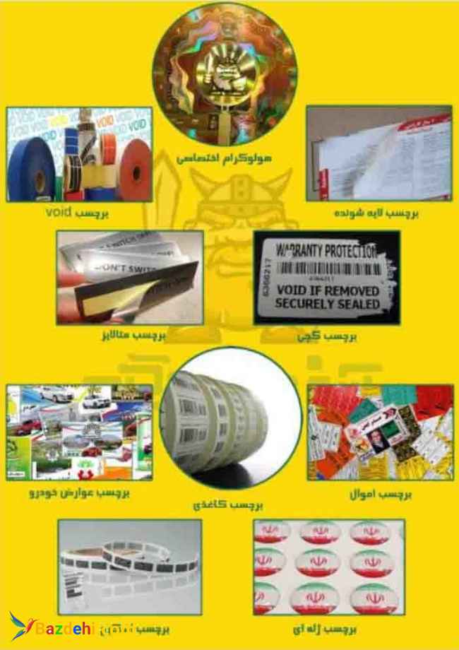 شامل: هولوگرام ، برچسب پلمپ ، برچسب وید (Void) ، برچسب خرد شونده ، برچسب لایه شونده ، برچسب اسکرچ ،