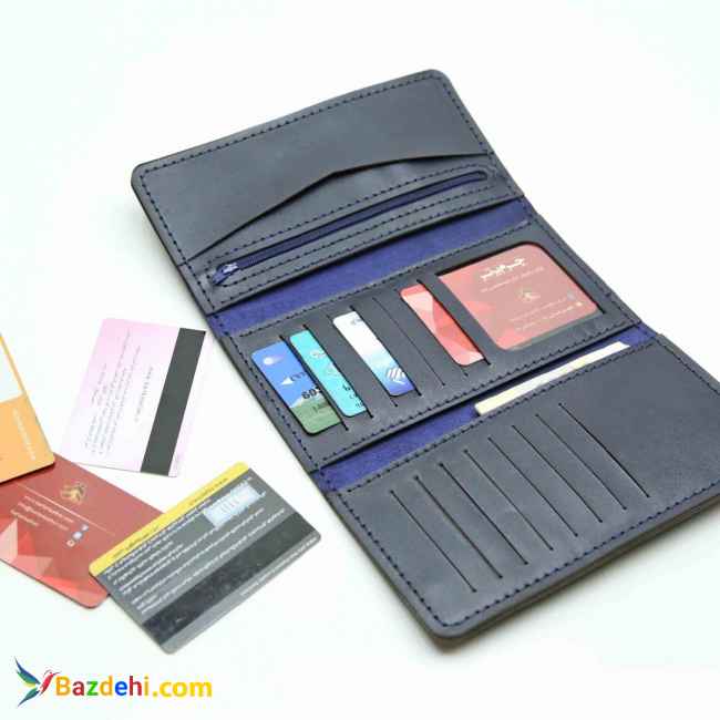 این کیف چرمی امکان قرار گیری ۱۴ کارت بانکی و میزان زیادی پول و مدارک و گوشی تلفن همراه را در خود دارد . بسیار شیک و زیبا مخصوص کسانی که میخواهند خاص و متفاوت باشند .جنس رویه کیف پول ۳ لت چرمی دست دوز از چرم کاملا طبیعی (شتری و گاوی ) میباشد .نخ استفاده شده در این محصول موم دار و درجه یک میباشد که باعث استحکام و طول عمر بالای این کیف میشود .استفاده از قفل مگنتی با کیفیت بالا امنیت باز شدن بسیار زیادی رو به این کیف چرمی داده است .