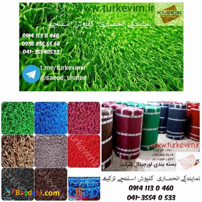 این محصول چند منظوره سری جدید سوپرمت تولید کارخانه kivircik ترکیه میباشد که توسط نمایندگی انحصاری تورک اویم، مستقیم و بدون واسطه با قیمت درب کارخانه در سراسر کشور توزیع میگردد ابعاد رول کامل:به عرض یک متر و طول ۱۶متر و تراکم بالا با ضخامت 16 میل با برگه و برچسب اصالت کالا. قابلیت برش در سایز و شکل دلخواه بدون از دست رفتن بافت و استحکام محصول تنوع رنگ: سبز،آبی،قهوه ای،کرم،زرشکی،قرمز،مشکی ،طوسی موارد استفاده:جلوی درب اماکن ،روی پله ها،کف فضاهای دارای احتمال لغزندگی،راهروها،لابی اماکن،کف آسانسور ،کف پاگرد ،دور استخر،سرویس بهداشتی،کف تراس ،فضاهای ورزشی و تفریحی،فرش تشریفات تالار،هتل،فرودگاه،رستوران،کافه تماس و سفارش: ارسال عمده وخرده سریع و مطمئن به سراسر کشور t.me/turkevimir : آدرس کانال تلگرام https://www.turkevim.ir : آدرس سایت ۰۴۱۳۵۵۴۰۵۳۳ - ۰۹۱۴۱۱۳۰۴۶۰ - ۰۹۳۶۸۵۵۶۵۶۸ آدرس دفتر مرکزی:تبریز-نبش بازار بزرگ تبریز-نمایندگی تورک اویم