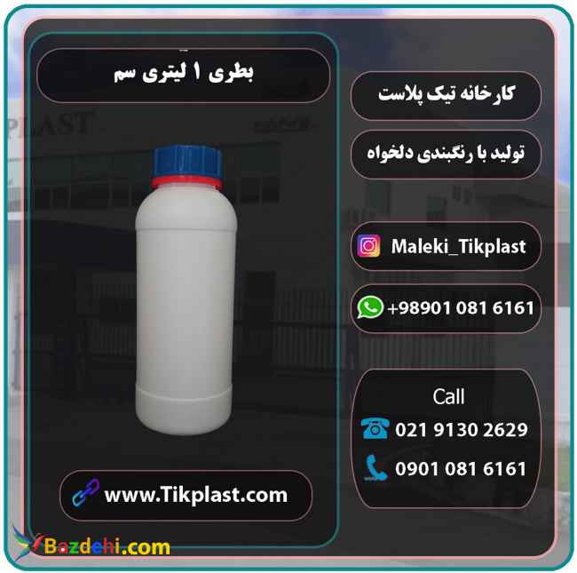 کارخانه تیک صنعت پلاست طراح یکی از تولید کنندگان بزرگ در صنعت پلاستیک است که با استفاده از انواع مختلفی از دستگاه های پلاستیک ، بیش از صد نوع متنوع از ظروف پلاستیکی را طراحی و تولید می کند. بطری سم یکی از محصولات کاربردی برند تیک پلاست است که در ظرفیت 1 لیتر تولید می شود و همان گونه که از نامش پیداست برای نگه داری انواع کود مایع و سموم کشاورزی و ... به کار برده می شود. این بطری کیفیت بسیار بالایی دارد و با توجه به اینکه وزن بالایی از مواد اولیه در تولید آن به کار برده می شود ، بطری سم مقاومت بالایی دارد و در برابر ضربه و فشار به راحتی دچار ترک خوردگی نمی شود. قوطی سم پلاستیکی 1 لیتری به عنوان بطری کود مایع ، بطری سموم کشاورزی و ... به کار برده می شود. این بطری همراه با درب فوم دار و پلمپ دار به فروش می رسد و دربی که بر روی آن بسته می شود کاملا آب بند است و عایق بندی بسیار خوبی دارد.بطری سم 1 لیتری در رنگبندی متنوعی امکان تولید دارد. بطری پلاستیکی سم یک لیتری قوطی سم پلاستیکی بطری کود مایع تولید کننده بطری سم بطری سم یک لیتری بطری پلاستیکی سم 1 لیتری بطری سموم کشاورزی برای خرید انواع بطری سم یک لیتری در شهر های مشهد ، اصفهان ، تهران ، کرج ، شیراز ، کرمانشاه ، اهواز ، زاهدان ، بوشهر ، خوزستان ، تبریز ، ارومیه ، گرگان و ... با شماره های موجود فقط تماس حاصل نمایید. آدرس کارخانه 1 : کرج ، هفت جوی شهرک صنعتی زرین دشت آدرس کارخانه 2 : تهران ورامین مدیر فروش : 09021613823 تلفن ثابت : 02191302629