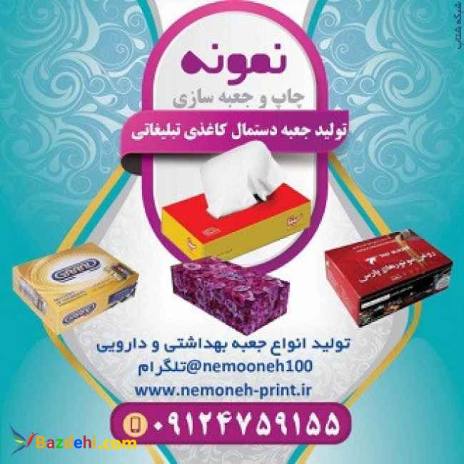 مجموعه طراحی ، چاپ و سلولوزی نمونه با تجربه 20 ساله ، متخصص ترین مرکز تولید و عرضه انواع دستمال کاغذی تبلیغاتی و اختصاصی و عمومی می باشد ، سفارش شما حداکثر ظرف مدت یک هفته با بهترین کیفیت تولید و تحویل خواهد شد . دستمال کاغذی های تبلیغاتی میتواند بعنوان بهترین هدیه قابل نمایش برای معرفی هتل ها ، کارواش ها ، تعویض روغنی ها ، بیمارستان ها ، شرکت های بیمه ، خودروسازها و شرکت های مختلف باشد . جهت رویت نمونه تولیدات به وب سایت www. Nemoneh-print.ir و یا کانال اینستاگرام https://instagram.com/Nemooneh.print برای تعرفه درخواست به کانال تلگرام پیام بفرستید nemooneh100@ آدرس : تهران _ تقاطع جمهوری و ولیعصر -جنب فروشگاه رفاه - پلاک 751 تلفن ثابت1 : 66979102 تلفن .ثابت2 : 66979105 فکس : 66976574 همراه : 09124759155 09906310043 سایت : nemoneh-print.ir کانال تلگرام: nemooneh100@ کانال اینستا گرام: https://instagram.com/Nemooneh.print ********* تولید انواع دستمال عرضه انواع دستمال تولید انواع دستمال کاغذی عرضه انواع دستمال کاغذی دستمال تبلیغاتی دستمال کاغذی تبلیغاتی سفارش دستمال تبلیغاتی عرضه دستمال کاغذی تبلیغاتی تولید اتواع جعبه عرضه انواع جعبه تولید جعبه تبلیغاتی سفارش انواع دستمال سفارش انواع جعبه تولید دستمال با طرح دلخواه تولید دستمال تبلیغاتی با طرح دلخواه تولید دستمال کاغذی با طرح دلخواه دستمال کاغذی های تبلیغاتی تبلیغات دستمال کاغذی تبلیغاتی دستمال کاغذی اختصاصی دستمال کاغذی سفارشی دستمال کاغذی جعبه دستمال کاغذی فروش جعبه دستمال کاغذی تولید انواع جعبه دستمال دلسی دستمال دوقلو تیشو فله