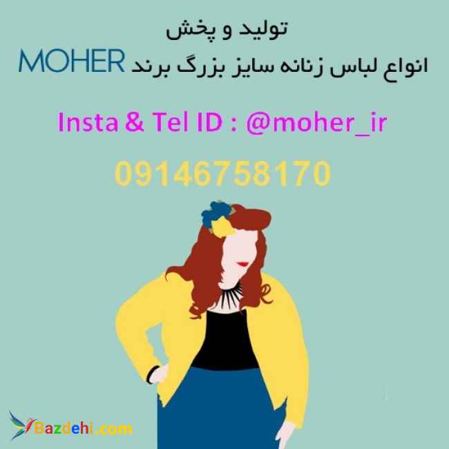 تولید کننده ی لباس زنانه سایز بزرگ برند MOHER هستیم که محصولاتمون ، لباس هایی با مدل های مختلف و گوناگونی با انواع سلیقه ها هستش که توانستیم رضایت عمومی مشتریان را جلب کنیم. محصولاتمون شامل لباس های مجلسی ، اسپورت ، راحتی هستش که شامل بلوز ، تاپ شلوارک ، مانتو ، شلوار ، تونیک ، تاپ شلوار و ... هستن. برای دیدن مدل ها و محصولاتمون میتونید به پیج اینستا یا کانال تلگرامیمون مراجعه کنید و یا با شماره تلفن 09146758170 تماس حاصل فرمایید. ادرس پیج اینستا : Instagram.com/moher_ir ادرس کانال تلگرام : T.me/moher_ir شماره تماس : 09146758170