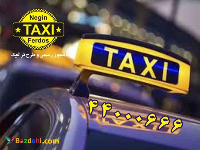 تاکسی سرویس فردوس با مجوز رسمی و ربع قرن سابقه در مدیریت و اجرای تاکسی سرویس وپیک موتوری شبانه روزی خدمات کاملی را برای مشتریان ارایه می دهد. دارای چندین شعبه در تهران می باشد. (قرعه کشی هفتگی بین کلیه مشترکین) خدمات قابل ارایه: - بیشترین آرم طرح ترافیک - بهترین کادر مجرب - تاکسی دراختیار-آماده عقد قرارداد جهت سرویس مدارس ارگانها و نهادها - خدمات شبانه روزی -تاکسی فرودگاه امام خمینی ارزان شامل تویوتا کمری ،تویوتا رافور،ون،هایس،مینی بوس،اجاره اتوبوس - خدمات سریع السیر پیک -سرویس های درون شهری وبرون شهری و کیلومتری 700 تومان شماره تماس 46013758-46013762-44431400-44487602-44487662-44487692-44487617-44487598-44487765-44436609-44441302-44026843-44026895-44026897-44044919-44015966-44000430-44000431-44000432-44000433-44000666