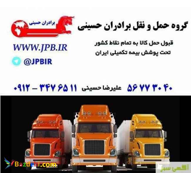 گروه حمل ونقل حسینی مدیر فنی و مشاور و متصدی حمل انواع بار حتی محمولات ترافیکی با ارزش های میلیاردی از تهران و حومه به تمام نقاط کشور و جزایر و مناطق مرزی با حمایت بیمه تکمیلی ایران⛱️ ????حدود بیست سال تجربه مستقیم ما در خدمت شماست. ???? اگر با ما همکاری نمیکنید لااقل از مشاوره رایگان ما بهره ببرید. ????جهت حمل و جابجایی سرمایه خود بیشتر دقت کنید. شرکتهای حمل ونقل زیادی در مجلات ، روزنامه ها، سایت ها و با روش های مختلف در حال تبلیغ هستند. تصمیم و حق انتخاب با شما است. گروه حمل و نقل برادران حسینی درایام تعطیل نیز فعال و در خدمت مشتریان گرامی است. راه های ارتباطی : ????????????????️ وبسایت : http://www.jpb.ir کانال تلگرام : ???????? http://Telegram.me/jpbir اینستاگرام :???????? www.instagram.com/jpb.ir/ تلفن : ????☎️ 33393011 - 33393012 - 56773040 - 02156773020 موبایل : ???? 09124454044 ، 09123476511