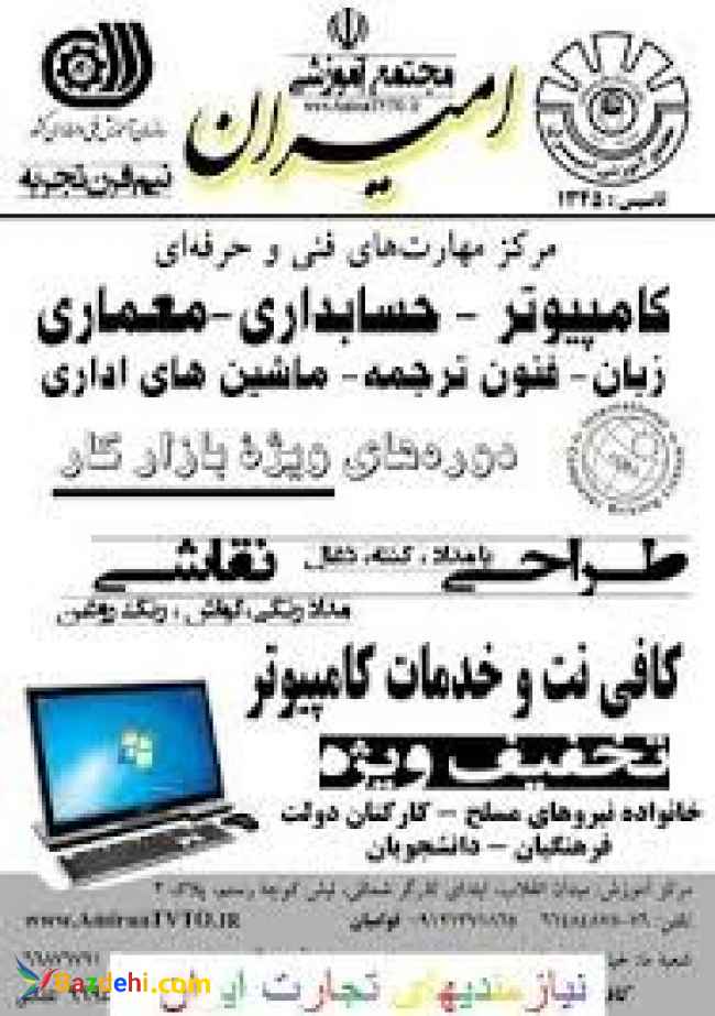 کاریابی امیران آموزشگاه دوره های کاربر ICDL در هر ماه دایر می باشد. در این دوره هفت مهارت ذیل را جهت اشتغال پایدار، آموزش می بینید : مبانی / Windows / Internet / Word / Excel / Access / Power Point (قابل ذکر است کلیه کلاس ها زیر نظر سازمان آموزش فنی و حرفه ای کشور و اساتید مجرب برگزار خواهد شد.) و در پایان دوره معرفی به کار زیر نظر مرکز مشاوره شغلی و کاریابی امیران میشود ضمناً دوره های آموزشی در شعب امیران خدمات آموزشی- فناوری اطلاعات- امور مالی و بازرگانی- امور اداری – معماری – صنعت ساختمان – برق- گردشگری- هتلداری- فناوری ارتباطات- مدیریت صنایع- هنرهای نمایشی- هنرهای تجسمی- فناوری نانو- فناوری نرم و فرهنگی- صنعت ورزش- فناوری سلامت و طب ایرانی و گیاهان دارویی- صنایع دستی (چوب، فلز، سفال، چاپ، سنگ ،شیشه ، چرم) و …..