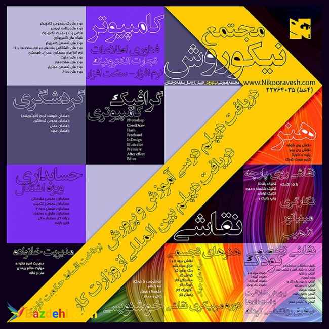 مجتمع آموزشی نیکوروش مجتمع آموزشی نیکوروش با بهره گیری از تجارب اساتید مجرب خود در حوزه آموزش فعالیت خود را از سال 1380 آغاز نمود و افتخار دارد که برگزاری دوره های آموزشی در رشته های کامپیوتر ، گرافیک ، هنر ، حسابداری ، گردشگری ، هتلداری و مدیریت را اجرا و در کارنامه خود به ثبت برساند.