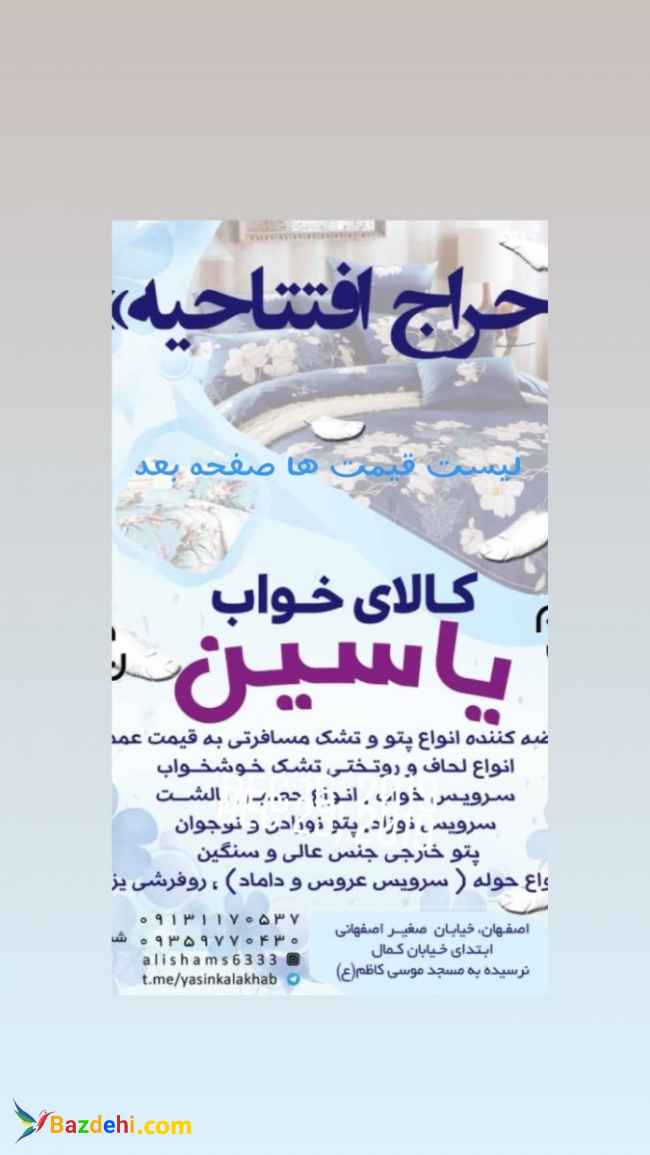 اصفهان خیابان صغیراصفهانی ابتدای خیابان کمال پشت اولین ایستگاه اتوبوس کالای خواب یاسین