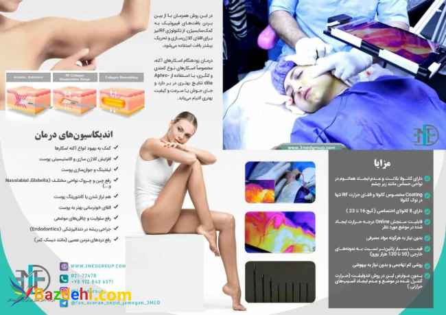 شركت دانش بنيان فن آوران سپيدجامگان با افتخار تقديم مي كند: Aphrodite نوین ترین دستگاه در حوزه زیبایی می باشد که از طریق کانولاهای ویژه انرژی حاصل از پرتو RF را در لایه های زیرین پوست القا می نماید و در نهایت موجب جوان سازی بافت مورد نظر می گردد. در این روش همزمان با از بین بردن بافتهای فیبروتیک به کمک سابسیژن، از تکنولوژی RF نیز برای القای کلاژنسازی و تحریک بیشتر بافت استفاده میشود. درمان زودهنگام اسکارهای آکنه، مخصوصاً اسکارهای نوع کمندی و لنگری، با استفاده از Aphrodite نتایج بهتری در بر دارد و جای جوش با سرعت و کیفیت بهتری التیام مییابد. اندیکاسیونهای درمانی: کمک به بهبود انواع آکنه اسکارها افزایش کلاژن سازی و الاستیسیتی پوست لیفتینگ و جوانسازی پوست رفع چین و چروک نواحی مختلف (Nasolabial ، Glabella و ..) هم تراز شدن یا کانتورینگ پوست القای خونرسانی بهتر به پوست رفع سلولیت و چاقیهای موضعی جراحی ریشه در دندانپزشکی ( Endodontics ) رفع دردهای مزمن عصبی ( مانند دیسک کمر ) شرکت دانش بنیان فن آوران سپید جامگان WWW.3MEDGROUP.COM تلفن : 02172478