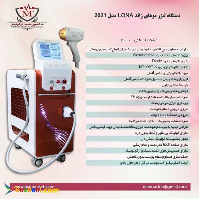*** مشاوره و تجهیز فقط به صورت حضوری در محل شرکت ماهور طب انجام می شود. *** فروش دستگاه لیزر موهای زائد در کرج توسط شرکت تجهیزات پزشکی ماهور طب تولید کننده، وارد کننده و عرضه کننده انواع تجهیزات زیبایی، لیزر، لاغری و جوانسازی با بیش از یک دهه فعالیت در حوزه تولید و فروش دستگاه های زیبایی و لیزر فروش دستگاه لیزر مو در کرج توسط شرکت اصلی ماهور طب انجام می شود. قیمت دستگاه لیزر لونا بسیار مناسب است، زیرا فروش این دستگاه بدون واسطه انجام می شود. فروش دستگاه لیزر لونا به روش های مختلف نقد و اقساط بدون بهره همراه با یک سال گارانتی و 10 سال خدمات پس از فروش معتبر انجام می شود. نصب و راه اندازی و نحوه کار با دستگاه لیزر لونا توسط متخصصین ماهور طب به طور کامل و رایگان به پزشک و اپراتور دستگاه داده خواهد شد. معرفی دستگاه لیزر سه طول موج لونا دستگاه لیزر سه طول موج الکس دایود اندیگ لونا جدیدترین و بروزترین دستگاه لیزر برای انواع پوست با تیپ های رنگی مختلف و انواع ضخامت مو مناسب می باشد. این دستگاه مجهز به چیلر داخلی قدرتمند و سیستم خنک کننده بسیار قوی است که می توان فرایند لیزر را با توان بالا و بدون ایجاد درد و سوختگی روی سطح پوست بر روی تمامی تیپ های پوستی انجام داد. ویژگی های دستگاه لیزر لونا : • مناسب برای تمامی تیپ های پوستی با انواع ضخامت مو • دارای قدرت نفوذ و جذب بالا در ملانین مو و حذف موثر موهای زائد • مجهز به سیستم خنک کننده مجزا و چیلر داخلی • خنک نگهداشتن سطح پوست در تمام مدت لیزر • کاهش خطر سوختگی بر روی پوست به دلیل داشتن کولینگ قدرتمند • بدون درد، کبودی و سوختگی پزشکانی که قصد راه اندازی مطب یا کلینیک پوست و موی موفقی را در شهر زیبای کرج دارند، می توانند با تماس با مشاوران ماهور طب دستگاه لیزر سه طول موج با کیفیت لونا را خریداری کنند. ماهور طب آماده ارائه خدمات زیر به پزشکان عزیز در سراسر کشور می باشد: • ارسال کلیه دستگاه ها به سراسر کشور با ارایه گارانتی و خدمات پس از فروش معتبر • آموزش تخصصی اپراتوری رایگان دستگاه • ارائه مدرک گواهینامه آموزشی بین المللی از مراکز معتبر علمی • نصب و راه اندازی دستگاه به صورت رایگان • دارای ضمانت اصالت دستگاه ها و پشتیبانی معتبر تمامی محصولات • مشاوره در زمینه تجهیز مطب و کلینیک • تامین و تجهیز مراکز زیبایی، مطب ها و بیمارستان ها • خدمات مهندسی شامل نصب و گارانتی و تعمیر و پشتیبانی و انجام سرویس دوره ای منظم برای دریافت اطلاعات بیشتر در خصوص خرید بهترین دستگاه لیزر موی زائد در کرج با مشاوران ماهور طب تماس حاصل فرمایید: مشاور ماهور طب : 09132042648 آدرس سایت : https://mahourteb.com *** مشاوره و تجهیز فقط به صورت حضوری در محل شرکت ماهور طب انجام می شود*** توجه : شرکت ماهور طب هیچ گونه فروش اینترنتی ندارد!!!