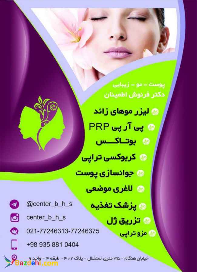 انجام کلیه خدمات پوست مو زیبای زیر نظر خانم دکتر اطمینان
