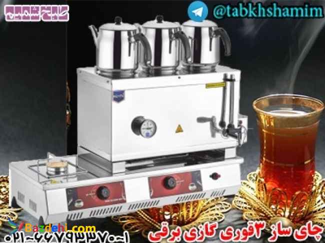 دستگاه چای ساز 3قوری گازی برقی مناسب استفاده در رستوران ها و کافه ها جهت ارائه سرویس چای داغ