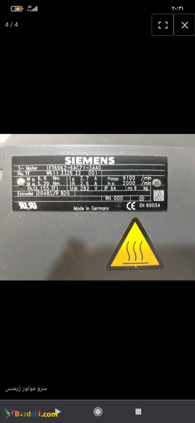 سروو موتور زیمنس المان وارداتی اکبند اکبند حتی از کارتنم در نیومده هنوز