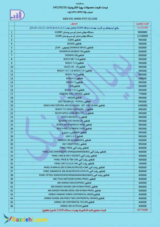 فروش دستگاه مولتی تستر پویا الکترونیک مدل G1009 باتمام کانکتور های پُر کاربرد ایسیو کانکتور های پشت آمپر کانکتور های ABS کانکتور های ایربگ همراه با تعداد ۵ عدد شابلون برای ایسیو های ریزینگ دار و تعداد ۴ عدد DVD های آموزشی(نقشه های ایسیو،دیتا شیت ها،سیستم های انژکتور و برقی انواع خودرو های ایرانی و اروپایی،نقشه های ایمو بلایزر و یونت گیربکس و...) همراه با دفترچه راهنمای دستگاه دستگاه کاملا نو هستش دارای گارانتی قابل استعلام میباشد و به علت تغییر شغل میخوام بفروشمش. قیمتی که خودم خریدم میفروشمش الان نوش تو بازار چهار تا پنج میلیون گرونتر شده!! تخفیف پای معامله ام دارم. ارسال هم دارم.