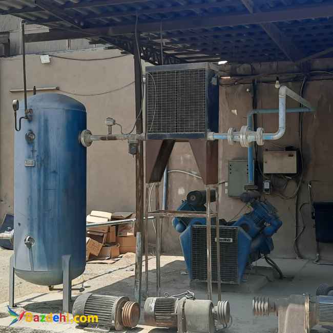 الکتروموتور ۶۳/۵ کیلو وات ساخت انگلیس ۴سیلندر مخزن ۵۰۰ لیتر ۱۰۰۰۰لیتر در دقیقه تولید باد فشار باد مخزن ۱۲ تا ۱۸/۷۵ بار
