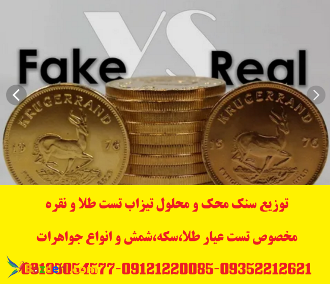 توزیع تیزاب تست طلا و نقره و سنگ محک تعین عیار طلا امروزه خرید طلا بصورت سکه،شمش،جواهرات و حتی تکه های ذوب شده بعنوان یکی از راه های اصلی پس انداز و سرمایه گذاری محسوب میگردد. اگر در تشخیص طلا و نقره و مسکوکات تخصص ندارید با خرید تجهیزات عیار سنجی میتوانید از خرید درست و صحیح خود اطمینان حاصل نمایید و از هدر رفت سرمایه خود جلوگیری نمایید توزیع محلول تیزاب سلطانی مخصوص تست طلا و همچنین عملیات بازیافت و استخراج طلا تولید محلول تیزاب مخصوص تست طلا با عیارهای 8K (333)-14K (585)-18K (750)-22K (916)-24K (999) توزیع محلول معرف شیمیائی تست نقره SILVER PURE-SILVER STERLING925-SILVER COIN 800-SILVER500 توزیع کیت تست نیکل مخصوص تشخیص نیکل در شهاب سنگ ها،سنگهای معدنی و آلیاژهای فلزی کلیه محلولهای تیزاب با مواد اولیه آزمایشگاهی و با خلوص بالا تولید شده است. ارسال کالا به تمام نقاط تهران و کلیه شهرستانها 09195054577-09121220085-09352212621-09057854577-09353903060 88804845-88924588-88802917