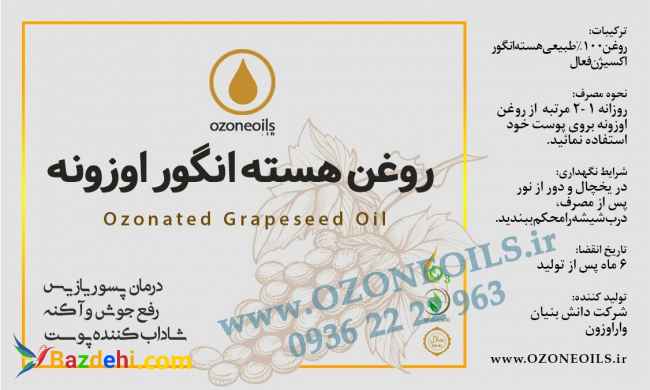 روغن هسته انگور اوزونه ( روغن ازن )   درمان پسوریازیس ، رفع جوش و آکنه ، جلوگیری از ریزش مو ، شاداب کننده پوست جلوگیری از ریزش مو و تقویت کننده مو سینرژی خواص روغن طبیعی هسته انگور  و اوزون محصولی ارگانیک و بی بدیلی را بوجود آورده است. روغن هسته انگور سرشار از فلاوانوئید، بتاکاروتن، ویتامین C و E   است که درجلوگیری از افتادگی پوست، بازسازی پوست و مو و رفع سیاهی دور چشم مناسب می باشد   روغن هسته انگور  اوزونه ،آنتی باکتریال قوی ، مرطوب و بازسازی کننده پوست و موی آسیب دیده است   مصرف روغن هسته انگور اوزونه درمان موثری برای پسوریازیس ، رفع جوش و آکنه ، جلوگیری از ریزش مو و شاداب کننده پوست است Ozonated Grapeseed oil   روغن اوزون /  روغن اوزونه  / روغن ازن Ozone oil / Ozonated oil   روغن اوزون روغنی است که طی فرآیندی اکسیژن فعال (اوزون) در آن تزریق و ماندگار می شود اين نوع روغن با دمیدن  مداوم ( حداقل یکماه ) و يكنواخت اکسیژن فعال به  محفظه محتوي روغن در شرايط دما و فشار مشخص حاصل مي شود و نتيجه آن اشباع باندهاي غير اشباع اسيد هاي چرب با اتمهاي اكسيژن است    اوزون یکی از آلوتروپهای اکسیژن است به فرمول  O3  که اتم اضافی در این ساختار آنرا به قوی ترین اکسید کننده و ضد عفونی کننده تبدیل کرده  وهمچنین  با افزایش اکسیژن و جریان خون در موضع ومهیا کردن مواد لازم برای ترمیم بافت های آسیب دیده باعث تسریع درمان می شود   در سالهای اخیر صنايع  دارويي و آرايشي اروپا و آمریکا تمايل زيادي به استفاده از روغن هاي گياهي اشباع شده با اوزون   از خود نشان ميدهند. و محصولات ویژه خود را با استفاده از روغن اوزون تولید می کنند . مطالعات جدید نشان مي دهد  روغن اوزون دارای اثرفوق العاده  ضد باكتري، ضد ويروس و قارچ كش مي باشد   این محصول با اکسیژن رسانی و ضدعفونی بافت آسیب دیده موجب ترمیم سریع و شادابی پوست و مو می شود.   بهترین روغنهای اوزون دار روغن هسته انگور - روغن زیتون- روغن سیاهدانه  - روغن گلرنگ- روغن تخم کدو   هستند.   به سراسر ایران ارسال می گردد   جهت مشاوره رایگان و کسب اطلاعات بیشتر با ما تماس بگیرید 09362222963 وب سایت : WWW.ozoneoils.ir     وبلاگ : http://ozoneoils.blogfa.com تلگرام :  https://telegram.me/ozoneoils. اینستاگرام : https://www.instagram.com/ozoneoils   روغن هسته انگور اوزون ( درمان پسوریازیس ، رفع جوش و آکنه ، جلوگیری از ریزش مو و شاداب کننده پوست) به سراسر ایران ارسال می گردد     قیمت : 50000 تومان