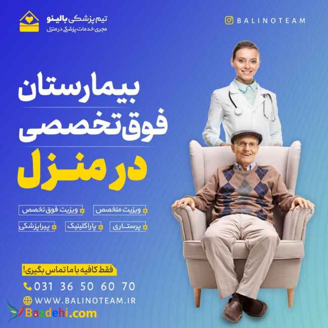 دسترسی به مراکز خدمات درمانی در این ایام از نیازهای ضروری خانواده ها محسوب می شود. ترافیک و مشغله های روزانه و عدم دسترسی به مراکز درمانی در روزهای تعطیل و غیر تعطیل و همچنین جابه جایی سخت و حتی غیرممکن بیماران کهنسال باعث شده تا ما خدمات پزشکی در منزل را همراه با اعزام همزمان پزشک و پرستار خبره و دوره دیده به همراه کلیه تجهیزات در برنامه خود قرار دهیم و آماده ارائه خدمات به مردم عزیز می باشیم. بالینو، بیمارستان فوق تخصصی در منزل شما خدمت رسانی در تمامی نقاط اصفهان ? 09135353954 (24 ساعته) ☎️ 03136506070 (از 8 صبح الی 8 شب)