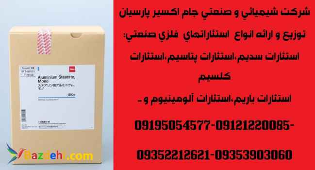 شرکت شیمیائی و صنعتی جام اکسیر پارسیان توزیع و ارائه انواع استئاراتهای فلزی صنعتی شامل: استئارات سدیم،استئارات پتاسیم،استئارات کلسیم ،استئارات باریم استئارات منیزیم،استئارات روی،استئارات آلومینیوم،استئارات سرب استئارات کادمیوم،استئارات نیکل و... SODIUM STEARATE, POTASSIUM STEARATE ALUMINIUM STEARATE, BARIUM STEARATE,… 09195054577-09121220085-09352212621