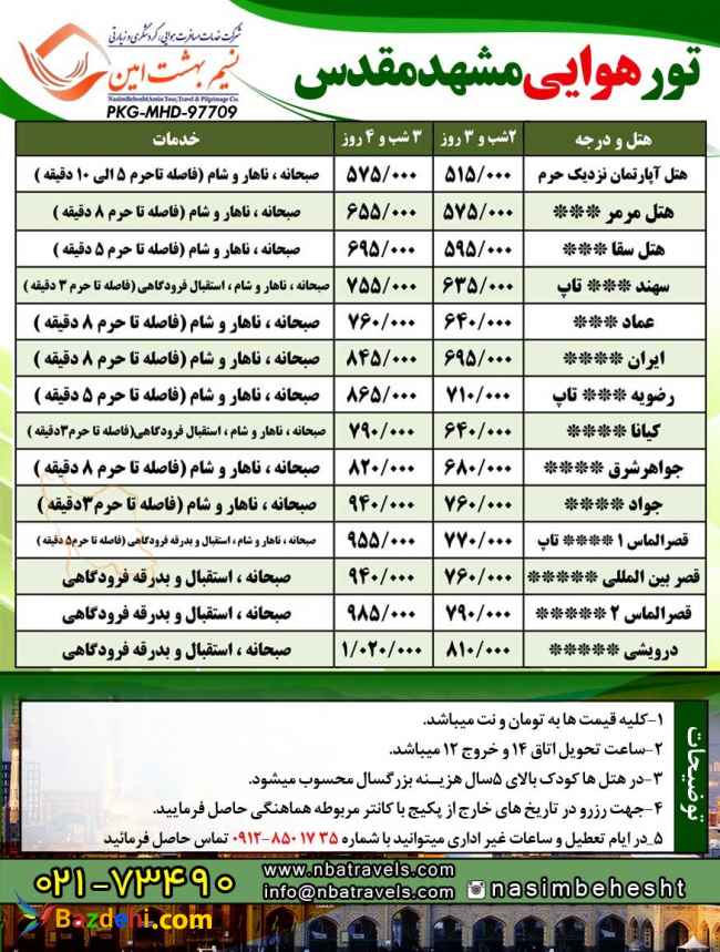 تور هوایی مشهد مقدس