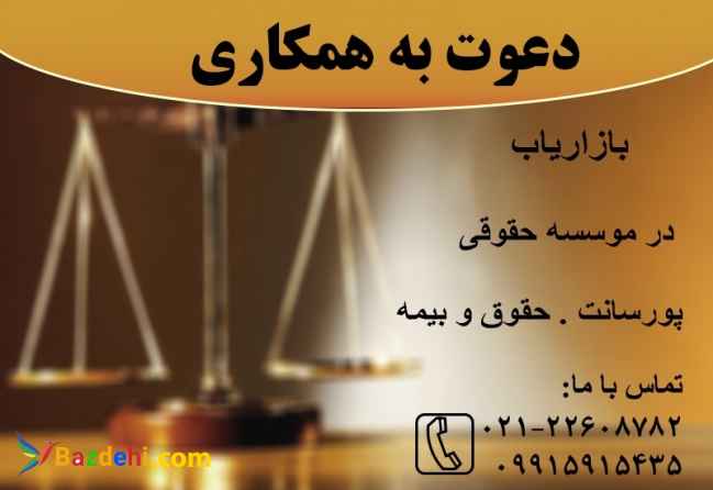 استخدام بازاریاب در مؤسسه حقوقی فعال ، پورسانت کامل + بیمه ، با درآمد بالا