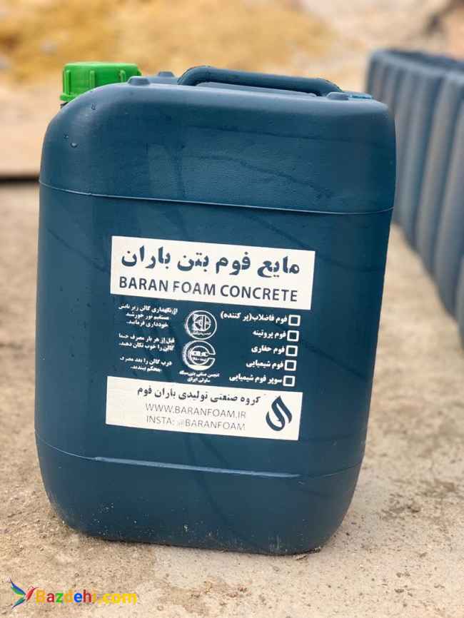 گروه صنعتی تولیدی باران فوم تولید کننده انواع مایع فوم بتن فوم بتن شیمیایی فوم بتن پروتئینه فوم حفاری فوم فاضلاب ( پر کننده ) بدون حباب شکنی مصرف پایین بین ۵۰۰ تا ۶۰۰ گرم در هر متر مکعب قابل استفاده در انواع آب تا سختی 500 هماهنگ با هر نوع دستگاه فوم بتن هر گالن 20 لیتری 290 هزار تومان 09190952469 فتحی