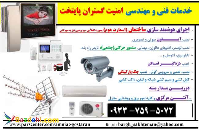 انجام کلیه امور برق ساختمان نصب دوربین مدار بسته، دزدگیر ساختمان، آیفون تصویری، درب بازکن، رفع اتصالی برق ساختمان، تایمر راه پله، سنسور (چشمی)، نصب و تنظیم آنتن و کلیه امور برق ساختمان پذیرفته می شود. شماره تماس و هماهنگی 09337595072 http://parscenter.com/amniat-gostaran