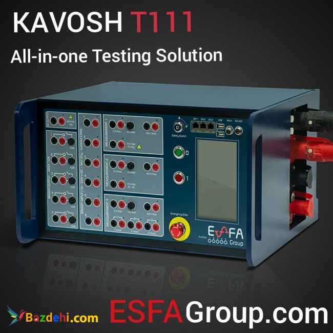 دستگاه آزمونگر جامع تجهیزات الکتریکی کاوش مدل KAVOSH-T111 با توان خروجی 5 کیلو ولت آمپر، جریان بیشینه 1000 آمپر AC و ولتاژ خروجی بیشینه 2200 ولت AC ، قابلیت انجام کلیه تستهای راهاندازی و دورهای تجهیزات با سطوح ولتاژ مختلف را در محل پستهای برق و محیطهای صنعتی با خطای اندازهگیری کمتر از 0.25 درصد دارد. از جمله ویژگیهای مهم این دستگاه کاملا بومی، انجام انواع تستهای مربوط به طیف وسیعی از تجهیزات الکتریکی با رابط کاربری آسان و تحلیل نتایج تستها به صورت برخط است. این محصول نمونه مشابه داخلی ندارد و قابل رقابت با نمونههای خارجی میباشد. این دستگاه قابلیت انجام آزمونهای مربوط به تجهیزات زیر را دارد: - ترانسفورماتور جریان - ترانسفورماتور ولتاژ - ترانسفورماتورهای توزیع و قدرت - کلیدهای قدرت - خطوط انتقال و کابل - شبکه زمین - کلیدهای فشار ضعیف و فیوزها - رله حفاظتی با تزریق از اولیه ویژگیهای منحصربفرد این دستگاه به شرح زیر است: - قابلیت تولید ولتاژ و جریان به صورت AC و DC در رنج وسیع (ولتاژ خروجی تا 2.2 کیلوولت و جریان خروجی تا 1000A AC/400A DC با توان نامی 5kVA) - طراحی کاملا بومی و ایرانی - دقت اندازهگیری کمتر از 0.25 درصد - استفاده از روشهای پیشرفته برای تست تجهیزات و تحلیل نتایج - تهیه خودکار گزارش تستها و دارای بانک اطلاعاتی یکپارچه - نرم افزار مبتنی بر وب با قابلیت کارکرد در کلیه سیستمهای عامل نظیر ویندوز، لینوکس و اندروید بدون نیاز به نصب در رایانه ( در مرورگر رایانه، موبایل یا تبلت باز می¬شود) - قابلیت اضافه کردن ماژولهای مربوط به تستهای پیشرفته (تانژانت دلتا، تست برقگیر، تست عایقی فرکانس پایین و ...) - تطابق روش و نیازمندی انجام تستها با استانداردهای ملی و بینالمللی - ارائه خدمات پشتیبانی به صورت جامع و در سریعترین زمان ممکن - برای اطلاعات بیشتر به وبسایت ESFAgroup مراجعه فرمایید.