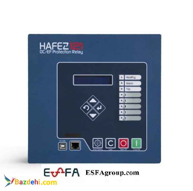 رله حفاظت جریانی نیومریکال یا رله ثانویه HAFEZ مدل 121 بر اساس استاندارد بینالمللی به شماره IEC 60255 طراحی و ساختهشده است. از آنجائی که در طراحی این رله از دانش کاملاً بومی و ایرانی استفادهشده است، منطبق با نیازهای شبکههای توزیع انرژی در ایران بوده و ملاحظات موردنیاز در طراحی آن در نظر گرفتهشده است که از این بابت باعث شده است که دارای ویژگیهای ممتازی نسبت به رلههای ساخت شرکتهای معتبر خارجی باشد. رله حفاظت جریانی ثانویه حافظ HAFEZ دارای تایپ تست کامل از پژوهشگاه نیرو می باشد و در لیست تامین کنندگان شرکت توانیر و در لیست وندور تمامی شرکت های توزیع برق قرار دارد. دو سطح (Stage) در حفاظت تأخیری ANSI 51 با منحنیهای استاندارد دو سطح در حفاظت آنی یا زمان ثابت ANSI 50 یک سطح در حفاظت تأخیری اتصال زمین ANSI 51N با منحنیهای استاندارد دو سطح در حفاظت آنی اتصال زمین ANSI 50N حفاظت Thermal Over load (ANSI 49) دو سطح حفاظت جریان مؤلفه منفی (ANSI 46-Negative Sequence) واحد تشخیص قطع سیم (Broken Conductor) کنترل دیماند (Demand Control) حفاظت خرابی کلید (ANSI 50BF-Circuit Breaker Failure) واحد مانیتورینگ محفظه قطع کلید (Wear Condition) و تعداد دفعات عملکرد مکانیزم فرمان واحد وصل مجدد (ANSI 79-Auto Reclose) حفاظت بار سرد (ANSI51c-Cold Load Pickup) تشخیص جریان هجومی برای قفل واحدهای حفاظتی (Inrush Blocking) توابع حفاظتی آنی برای تشخیص جریان زیاد (I>>>) یا خطای زمین (I0>>>) با زمان عملکرد کمتر از یک سیکل (Sub-cycle) بهبود پایداری واحدهای حفاظت جریان مؤلفه منفی و تشخیص اتصال زمین در مواجهه با اشباعCT بهبود عملکرد واحد تشخیص جریان هجومی در مواجهه با اشباع CT تنظیم هوشمند و سریع برای حفاظت ترانسفورماتور توزیع بهبود عملکرد بهکارگیری ترمومتر ترانسفورماتور برای صدور آلارم یا تریپ رکلوزر هوشمند انتخاب روش محاسبه دامنه جریان بر اساس هارمونیک اول یا True-rms تنظیم مشخصه و زمان ریست رله پروتکل ارتباطی Modbus RTU برقراری ارتباط با برنامه کامپیوتری از طریق پورت شبکه (TCP/IP) نرمافزار با محیط گرافیکی کاربرپسند برای کار با رله (تنظیم، پیکرهبندی، مشاهده شکل موجهای ثبات خطا و غیره) امکان ثبت وقایع و خطاها امکان ثبت شکل موج جریان و خطاها دارای تاریخ شمسی و میلادی دارای 2 ورودی دیجیتال (Digital Input) قابلبرنامهریزی دارای 5 کنتاکت خروجی (Digital Output) قابلبرنامهریزی دارای 8 چراغ سیگنال (3 عدد با کاربری ثابت – 5 عدد قابلبرنامهریزی) برای اطلاعات بیشتر به وبسایت ESFAgroup مراجعه فرماید.