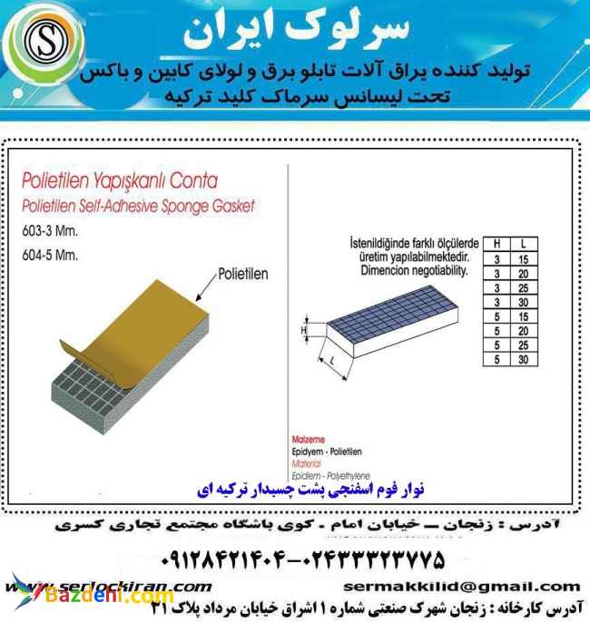 گروه صنعتی سرلوک ایران در زمینه تولید انواع قفل ولولای تابلو برق/باکس آتش نشانی/انواع یراق آلات کابین ژنراتور/نوار فوم های تزریقی پشت چسب دار جایگزین تزیق فوم و نوار فوم های معمولی پشت چسب دار فعالیت میکند