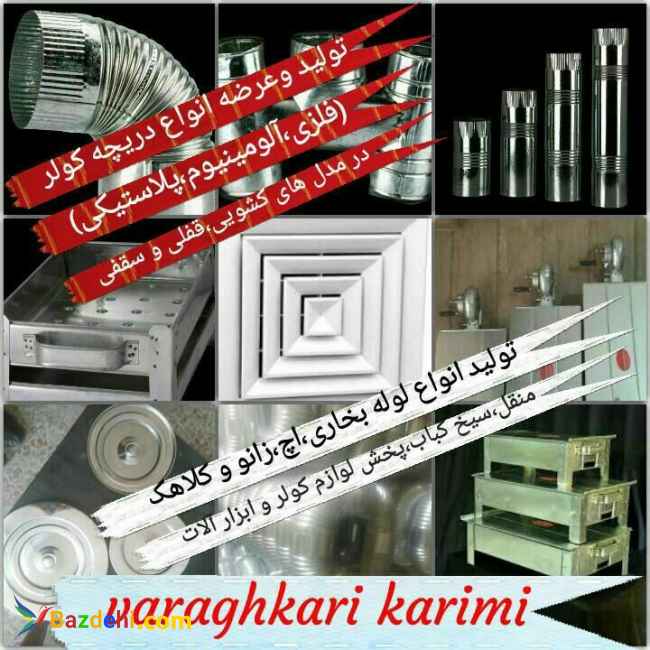 گروه تولیدی کریمی تولید کننده انواع دریچه کولر در مدل های مختلف(قفلی.سقفی.دیواری.پلاستیکی)با بهترین رنگ و کیفیت تولید کننده انواع لوله بخاری .اچ.کلاهک.دری بخاری.زانو و کلیه اتصالات و مصنوعات گالوانیزه ...