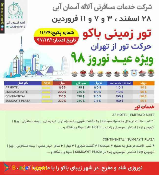 تور باکو (199 هزار تومان آژانس مسافرتی آلاله)