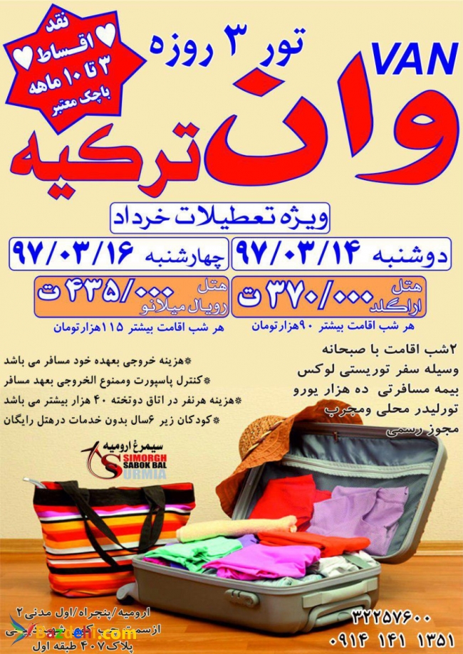 تور 3 روزه وان ترکیه ویژه تعطیلات خرداد(نقد و اقساط)