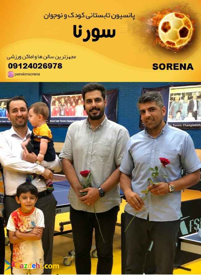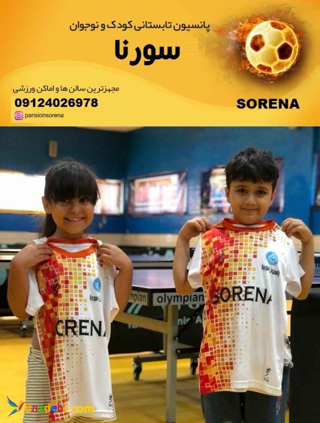پانسیون تابستانی ورزشی کودک و نوجوان سورنا نگران تابستان فرزندان خود نباشید مکانی مطمئن برای پر کردن اوقات فراقت فرزندان شما مجهزترین سالن ها و اماکن ورزشی ارایه گواهی پایان دوره ارایه ناهار گرم ارایه سرویس رفت وآمد با حداقل هزینه ارایه تجهیزات ورزشی :پیراهن- شورت ورزشی آموزش توسط مربیان برجسته دانشگاه تهران و مورد تایید فدراسیون رشته مربوطه کلاس تابستانی ورزشی کودک و نوجوان سورنا راه های ارتباطی شمارههای تماس : - 09124026978 - آدرس اینستاگرام : http://instagram.com/pansionsorena