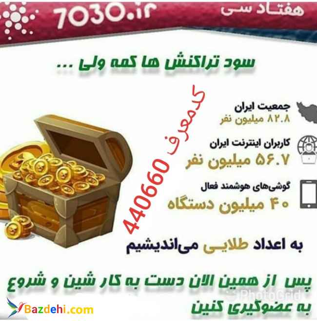 یه راه برای یه درآمد عالی وبینظیر .اپلیکیشن ۷۰۳۰ همانند ۷۸۰،آپ،تاپ و... هستش که میتونید از بازار وگوگل پلی دانلودش کنید و باهاش میتونی کارهای خودتون رو از قبیل خرید شارژ ،بسته اینترنت، پرداخت قبوض تلفن وبرق وگاز،خرید بلیط هواپیماو قطار ،کارت به کارت و خیلی کارهای دیگه که به مرور زمان بهش اضافه میشه را انجام بدهید اما فرقش با بقیه آپها اینه که ۷۰۳۰ شما را در سود حاصل از این تراکنشها شریک میکند و۷۰ درصد سودش را به کاربران خودش میدهد.همچنین شما میتوانید با معرفی برنامه به دوستان وآشنایان از تراکنشهای آنها نیز سود دریافت کنید.شما کافیه فقط ۵ الی ۱۰ نفر را دعوت کنید وبعد بگذارید تا بقیه تیم شما را درست و گسترش بدهند بعد از چند ماه میبینید اعضای تیمتان به دههاهزار و شاید خیلی بیشتر برسد .اونوقت دیگه میتونین ثمره صبر وزحماتتون را ببینید. شناسه معرف برای ثبت نام الزامیه : 660440 ??ضرر نمیکنیدبدون هیچ هزینه وسرمایه ای در۷۰درصد سود شریک میشین.امتحان کنید وببینید که واقعیته واگه رضایت نداشتین براحتی حذفش کنید ولی من قول میدم اینکارو نمیکنیدودنبالشو میگیرید.?? ????????????????? برای ثبت نام راحتتر لینک را در مرورگر یا تلگرام کپی کرده وثبت نام کنید. https://7030.ir/r/660440