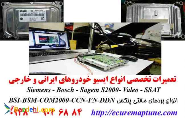 تعمیر ایسیو خودرو انواع خودروهای ایرانی خارحی چینی بصورت تخصصی و تضمینی 09389046884 09389046884 تعمیرات تخصصی انواع ایسیو خودروهای ایرانی و خارجی و چینی Sagem Valeo Siemens Bosch Valeo SSAT Delphi Denso MAW Easy U LZNF پراید – پژو – 405 – 206- سمند – دنا – ال نود – رانا – مگان – تیبا – سورن – 207 – کوئیک – ساینا و... کیا – هیوندا – تویوتا – لکسوس و.. حیلی – ام وی ام – برلیانس – چری و.. خودروهای چینی رفع مشکلات عدم کارکرد یکی از سنسورها سوختگی ایسیو روشن نشدن خودرو آبخوردگی ایسیو تعویض آی سی و قطعات تعمیرات ایسیو ABS-Airbag و گیربکس و موتور کلیه خودروهای سواری و سنگین (اتوبوس، کامیون و...) دانلود فلش ریست کانفیگ انواع ECU فروش انواع ECU به همراه نصب و پروگرام روی خودرو ریمپ و تیونیگ تخصصی انواع ایسیو خودروهای خارجی و ایرانی افزایش شتاب و راندمان موتور رفع تاخیر کپ گاز – کاهش دما فن افزایش شتاب و کاهش مصرف حذف محدودیت سرعت و کاتاف تعمیر و برنامه ریزی انواع بردهای الکترونیکی خودرو BSI – COM2000-BM34 تعمیرات خودروهای مالتی پلکس تعمیر انواع بردهای خودروCCN FN DDN CBM تعمیرات تخصصی CCN ماکس خودروهای سمند سورن رانا 206 مدلهای 89 الی 91 تعمیرات ایموبلایزر (سیستم ضد سرقت) تعریف کد سوییچ انواع خودرو تعمیر و تنظیم کیلومتر انواع خودرو به شرط دیاگ تعمیرات کلیه خودروهای دوگانه سوز دستی کارگاهی کارخانه ای CNG LPG دیاگ و عیب یابی (تنظیم موتور) تعمیر کلیه خودروهای سواری تست تمامی سنسورهای خودرو روشن کردن خودرو خاموش شده رفع مشکل کپ خودرو رفع مشکل گاز خوردن بی مورد رفع مشکل ریپ زدن و سه کار کردن تعمیر تخصصی دریچه گاز برقی انواع خودرو رفع مشکلات عدم گاز خوردن و ایرادات مربوطه تعمیر تخصصی سیستم توربوشارژ خودروهای کیا هیوندا و چینی دیاگ تخصصی و رفع عیوب کیا هیوندا تعمیر تخصصی سیستم GDI http://ecuremaptume.com https://www.instagram.com/ecu.remap 09389046884