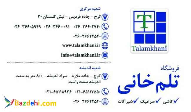 کرج -جاده فردیس –نبش گلستان 30- فروشگاه تلم خانی , کرج – سه راه اندیشه -فروشگاه تلم خانی