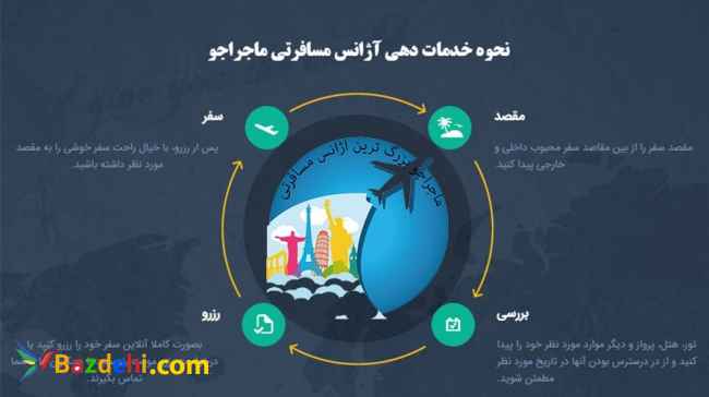 ماجراجو یک اژانس مسافرتی هستش که خدمات فروش بلیط های مسافرتی و خدمات گردشگری رو اعم از هواپیما، قطار، هتل,تور ارائه میده. شما مسافر عزیز به غیر اینکه میتونید از این سایت انواع بلیط ها رو خریداری کنید میتونید حتی برای هتل ها، بیمه های مسافرتی نیز خدمات بگیرید. از اونجایی که هدف ما تامین خدمات مسافرتی و گردشگری شماست میتونید به پیج اینستاگرامی ما مراجعه کنید و تخفیفهای ویژه ای رو که فقط در اونجا برای شما تدارک دیدیم رو انتخاب و استفاده کنید