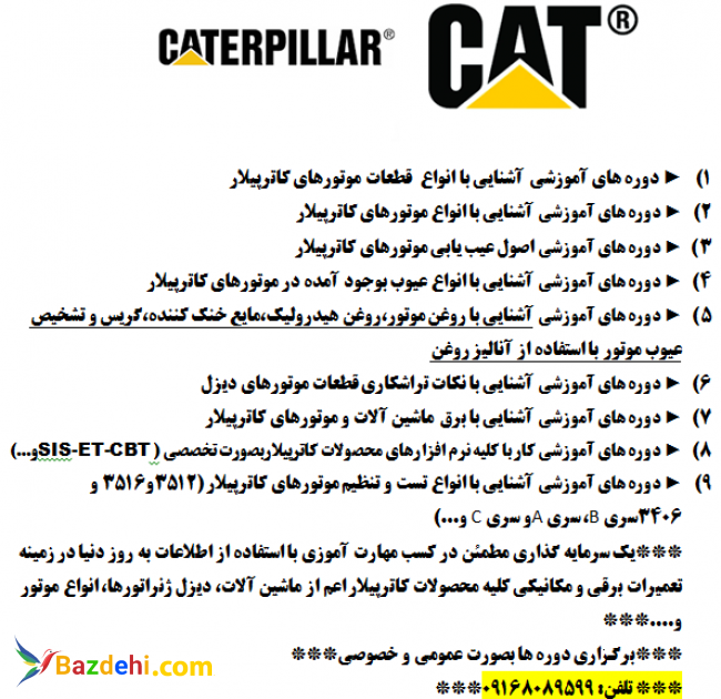 آموزش فني و حرفه اي(برق-مكانيك) محصولات CATERPILLAR